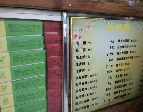 - 唯一一家五星级推荐的店面,因为绿豆饼真的很好次很好次。一般到晚8点半左右,就停止售卖了实用