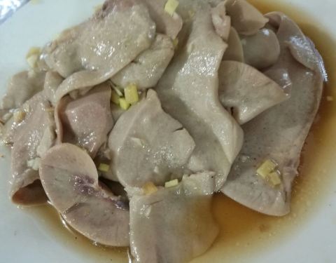 听当地人说是百年老店,生意非常旺,没有预定位置的话,基本上就要靠等待翻台了。 为了一尝当地老店特色,隔天特意去店里预定,结果还只是预定到第二天下午的四点半的早场。 白切鸡很壮,半只一大盘(45元?),...听当地人说是百年老店,生意非常旺,没有预定位置的话,基本上就要靠等待翻台了。 为了一尝当地老店特色,隔天特意去店里预定,结果还只是预定到第二天下午的四点半的早场。 白切鸡很壮,半只一大盘(45元?),小鲳鱼二条很新鲜(95元),海瓜子其实是花蛤(30元)、醉腰花脆嫩(40元)、白米虾豆腐汤(白米虾又肥又Q弹55元)青菜豆腐皮(15元)。要说菜的味道有多好,倒是难讲,不过胜在材质很新鲜。 店堂内的食客大多是江浙一带和来自各地的游客,大家都是甩开膀子吃饭!扯着嗓门说话!想抽烟就抽烟,想吐痰就吐痰的范! 人气爆满、吵吵嚷嚷!喜欢安静环境用餐的朋友要有心理准备。