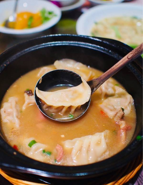 - 有浓烈的豆味十分嫩老鸭饺子 饺子就和速冻饺子一样老鸭呢就是一只鸭腿 鸭汤是用中药熬制味道浓稠 红烧肉