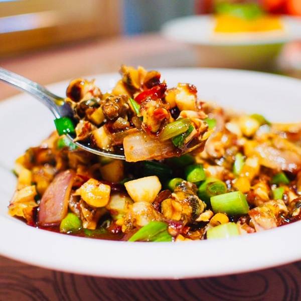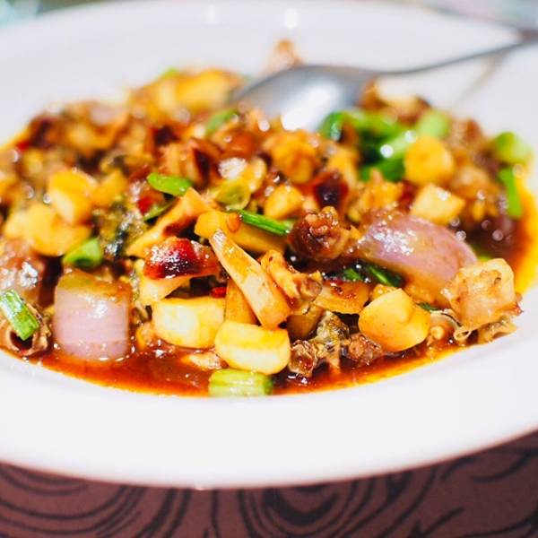 「糖醋排骨」 没有一点骨头的排骨也太适合我了!一份量超多!吃到饱为止啦~配的糖醋汁会有点甜我觉得好恰~台州人爱吃姜排骨会带点姜味能接受。 「辣螺」 吃螺好欢落~整盆的螺肉吃起来好不费劲!酱汁完全入味也没有一点腥味~螺肉提前处理好不用自己用嘴嘬还可能嘬不出会尴尬 ·「红豆乳酪羹」 两个人吃一份真的吃不动!份量太足以至于浪费了很多,红豆沙有点甜上面还撒了糖桂花感觉更甜了!另一部分类似于鸡蛋布丁的口感很好吃~这道菜还是很有特色滴。