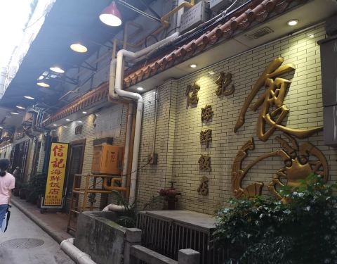 隐藏在小巷里的粤菜餐馆。刚好上海朋友来广州游玩,带他来吃传统的粤菜。 信记就在长堤大马路的小巷子里,不认真找很容易会错过路口。这里并没有豪华的装修,只是比较普通旧式的楼面。餐牌也是比较简约,前面几页...隐藏在小巷里的粤菜餐馆。刚好上海朋友来广州游玩,带他来吃传统的粤菜。 信记就在长堤大马路的小巷子里,不认真找很容易会错过路口。这里并没有豪华的装修,只是比较普通旧式的楼面。餐牌也是比较简约,前面几页都是海鲜,价格都是时价,原本想点爆炒圣子,可惜休渔期,没有货供应。于是点了一鱼两吃,南乳肉,盐焗鸡,啫啫黄鳝煲,虾酱通菜。 一鱼两吃,鱼是生鱼,鱼肉起片炒菜心,鱼肉不是很多,不过也较为爽口。另外的鱼肉鱼骨就煲豆腐汤,比较清甜。 盐焗鸡,鸡肉都比较嫩滑。 南乳肉,肥肉居多,但吃上口不油腻,不过搭配炼奶的酱料有点奇怪,建议直接吃。 啫啫黄鳝煲锅气够,很香,黄鳝也是爽口多肉。