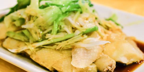 葱油淋鸡,肉滑紧实,拥有果冻一般的口感,而葱油的加入,则使鸡肉更加好吃
