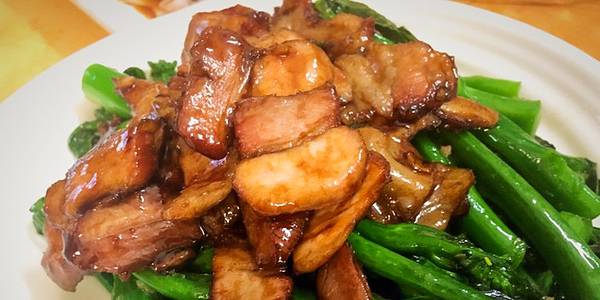 这里光看名字就知道是老字号了,是的,解放前的店。来这里比较怀旧吧。 店面比从前扩大了,但是也只大了一倍,还是很拥挤。 进来吃饭,一是名声在外,二是顺路就近。 葱油淋鸡,豉油皇鹅肠,生炒骨,碌鹅,酿辣椒,煎侷鱼头,捞肚尖,都中规中矩。 老店环境都陈旧,很多不适应,但这不是重点,能继续长久地开下去,老师傅们能继续做下去,我们还能时常来这里大快朵颐,就挺好的了。