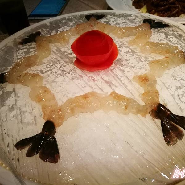 菜品:人少的话不建议点鱼生,一般一条鱼都至少有3,4斤重,这次我们一男一女+一个孕妇,食鱼生的主力不够,就点了虾生,也很美味~好了~开始上菜~~~另外还点了一个青菜,青菜么,都差不多,味道也无功无过,就不拍了。对于广东人,青菜更多的是一个功能菜,就是不管点多少菜,要结尾了,总要说“就这些了,那就再点一个青菜就行了”。