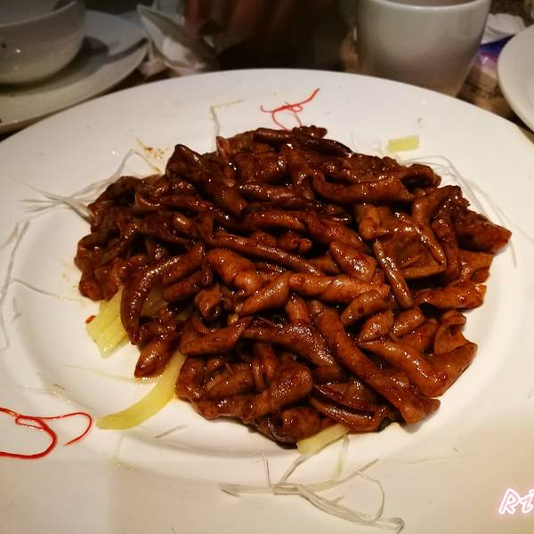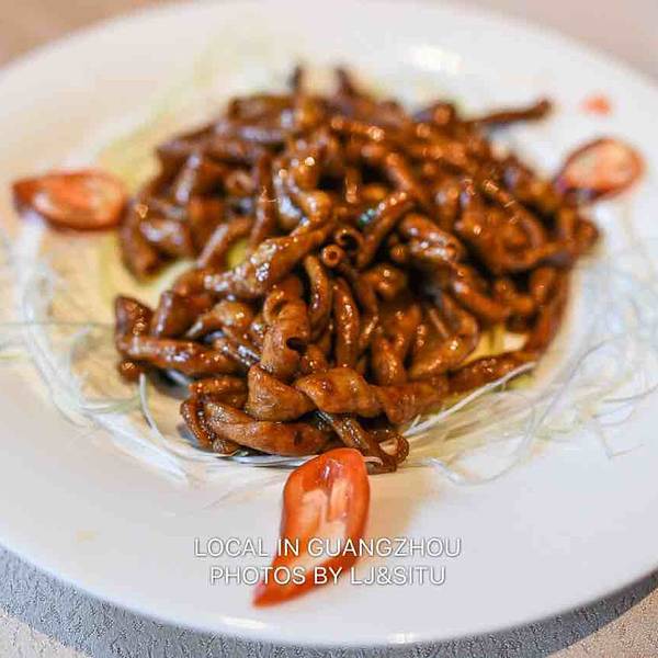 鹅肠足够新鲜,入口脆嫩有嚼劲,浇上豉油更是鲜美,就连垫底的土豆条也足够入味,很是下饭。