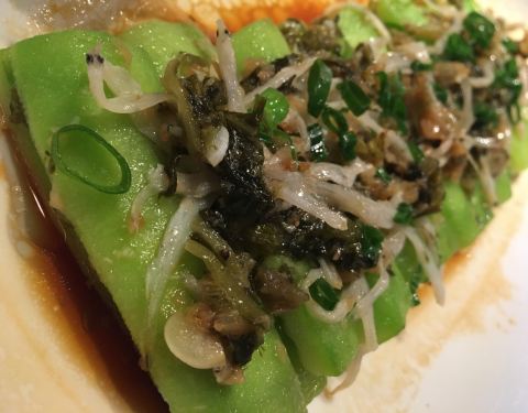 「煲淋萝卜」寡淡了些「清淡银鱼仔蒸丝瓜」不错,上面配料好吃