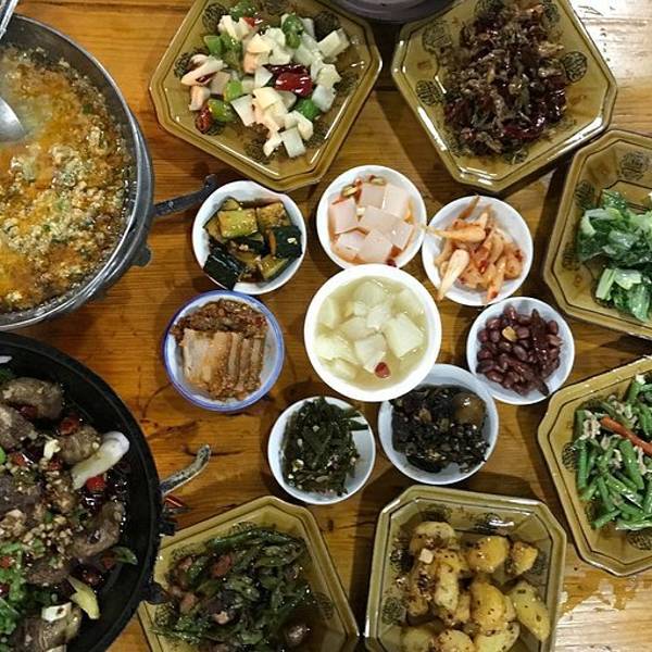 合渣 牛肉萝卜锅 土鸡山药锅 番茄江团 玉米饭 土豆腊肉 土豆饭 泡萝卜 干煸牛肉丝 腊肉茶树菇 粉皮 土豆丝