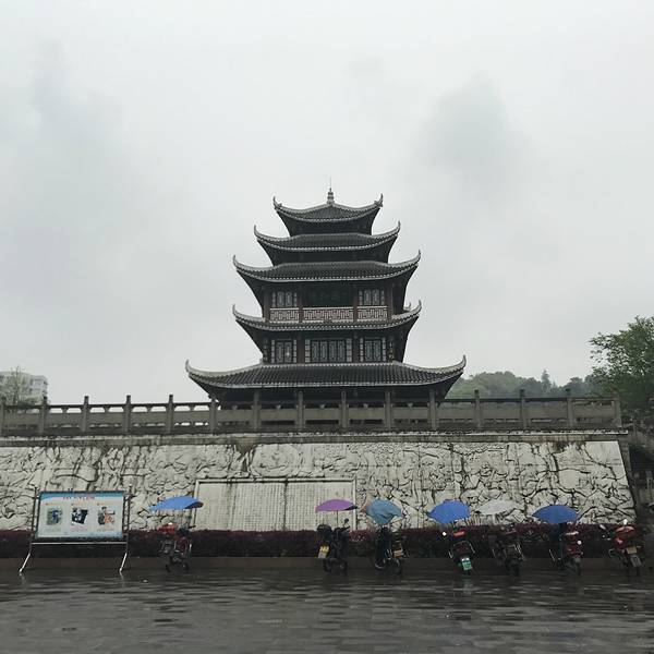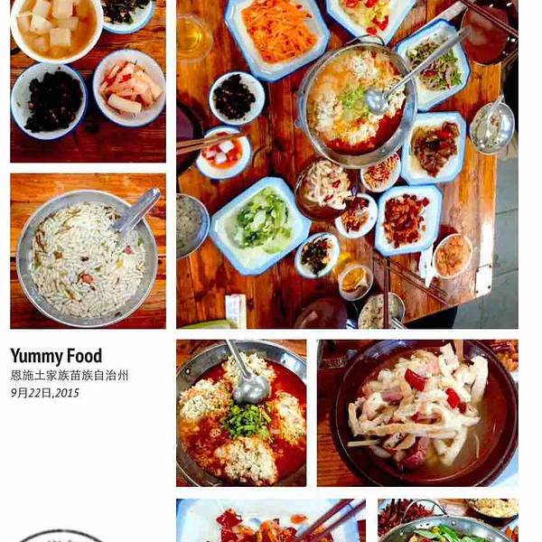 今天腿依旧很酸爽,天气也不好,下雨了,我和闺蜜决定市内一日游。今天的重头戏是吃——张关合渣。这是恩施的一家连锁店,特色是合渣。在酒店附近就有一家,航空路上。我和闺蜜昨晚8点也去过,人超多,要自己等座位。轮到我们时,被告知合渣已售完,内心再度崩溃。于是今天上午11点半就来到该店,准备大吃一顿。两人点了一个腊肉洋芋片锅,再加上一个合渣锅,还有一堆配菜,总共80元。等菜上齐时,我和闺蜜都惊呆了,简直是满汉全席,摆了满满一桌子。主食是土豆饭,超级香。只可惜我们的胃不够大,吃不完一整桌。饭后打车到风雨桥逛了下,又沿着清江漫步。雨天鞋都湿了,只好打道回府。下午6点的动车到利川,因为时间充裕,改签到5点半了。