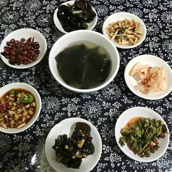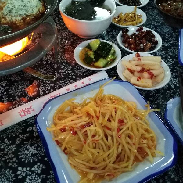 主食是土豆饭,超级香。今天的重头戏是吃——张关合渣。只可惜我们的胃不够大,吃不完一整桌。清江河畔