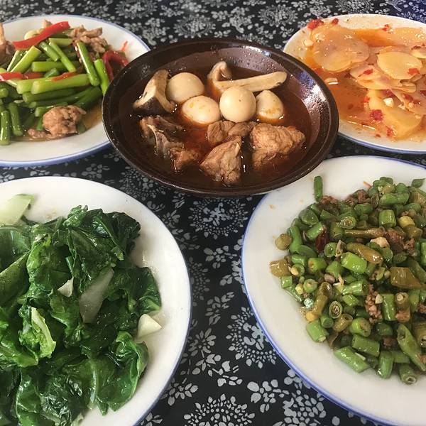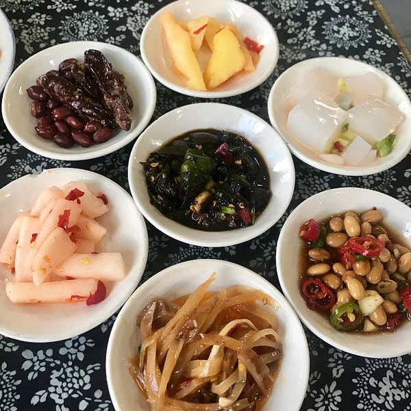 在青旅认识的第一个妹子二虫,带我来了这家合渣店,体验了当地的饮食文化。附上小女吃饭图一张,现在回忆再三,还是之前那感受:正菜不如配菜好吃,尤其是那个豆腐渣拌饭,吃出了肉沫炖蛋拌米饭的感觉;还有糙米油酥茶,加了绿茶反倒减轻了油酥的油腻感,个人喜欢这两样。其他小菜尚可!就是,主菜不行。不晓得,厨师长听了这话会不会火冒三丈啊。[调皮]价格的话,倒是不贵,人均60。配菜之一配菜之二配菜之三:豆腐渣工程(我取的名字🙈),不过,真心好吃😋。配菜之四:绿皮酥油(我取的名字🙈),加了绿茶将油腻去了有三分。主菜@脆骨猪尾巴来了,说实话,没怎么吃。感觉味道进不去的样子。难道是火炉威力不够的缘故?