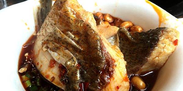 - 鱼头还是比较新鲜,而且煮得很入味。锅里的大头菜,一大片一大片的,很好吃。卤的鸭舌也很不错