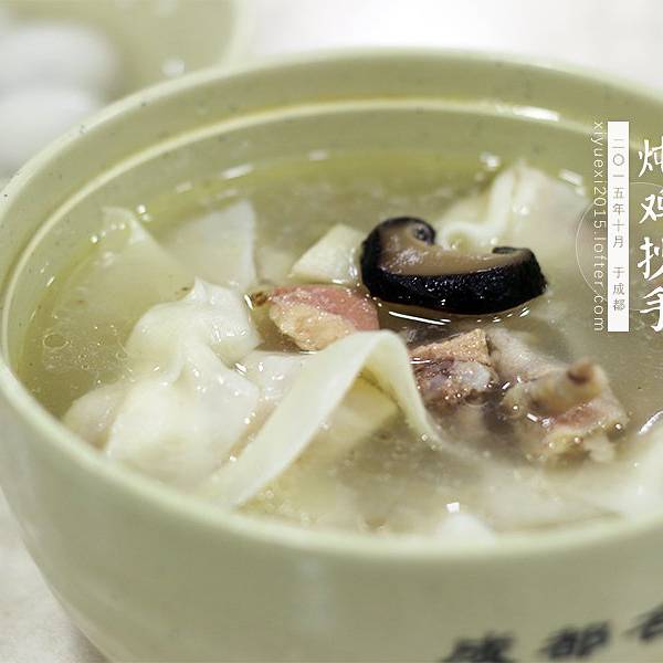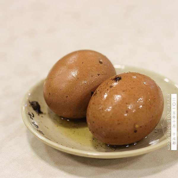 入座不多时,菜品齐至,【炖鸡抄手】有鸡块香菇浮于汤面,方动筷则皮散馅出,与左右四邻难舍难分,皮馅本当天作,而今皮间搞起基来,怪哉!食之,汤清味淡,罕有鸡味,皮烂馅韧,其味了了,如啖鸡肋;再尝【赖汤圆】,皮厚而馅微,如蚌中取珠,汤团绵烂而粘,一颗入口则须舌齿鏖战一番,若油肚悍妇叉腰于齿间怒骂,是为久煮之过;至【茶叶蛋】时已全无了兴致,虽初闻奇香,褪壳再观色白,仅有茶色数道蜿蜒其上,势必无味,食之果然,心躁之过。