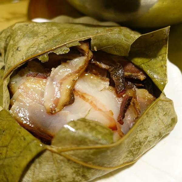 荷叶酱肉,用荷叶包着的肉,带皮,很香,我不吃肥肉的人都蛮爱啦,推荐哟。