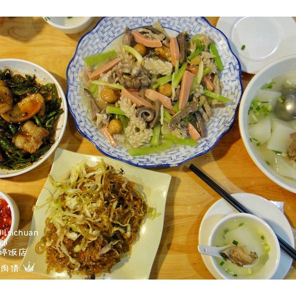 曾经明婷饭店在成都号称第一的苍蝇馆子,然而新店已经没有老苍蝇馆子得感觉了,没办法拍到很古老的feel好难过。然后发现光顾的都是专门打车去得游客。很可惜这次去明婷胃口不好,点的都是很清淡的东西,有全家福,感觉这是最不该点的,而且超级大份实在吃不完,就是鹌鹑蛋啊 鱿鱼啊 火腿啊 莴笋啊一顿乱炒……点这道菜就有点可惜了。素翅莲白,好吧原来是粉丝炒包菜,粉丝QQ的,加上包菜、辣椒翻炒,别说还挺香。回锅肉是我这餐最满意得了!!白肉+青椒虽说有点油,但终于感受到再吃川菜了实在感动。这里比较推荐这道回锅肉。最难过的是隔壁桌刚好点的都是这些菜,我真是吃着自己桌上的,看着别人的。唉。之前做了攻略,说到明婷饭店要点脑花豆腐(也就是猪脑+豆腐+豆瓣酱)、荷叶酱肉、还有看到隔壁桌点的水煮肉片,实在是馋。然后再看看自己吃的是什么……总之当明婷饭店从菜市场搬迁后,“苍蝇馆子”就没有“苍蝇馆子”的味道了,倒更像游客店了。因人而异吧。菜单上花样挺多的,有不辣的也有辣的,辣的就是那些大家常点的被炒得很火的那几道,不辣的就像我点的这样。所以作为游客,如果带小孩或者不敢吃辣的去也是不错的选择。至少她家的味道不错,也不会太油。