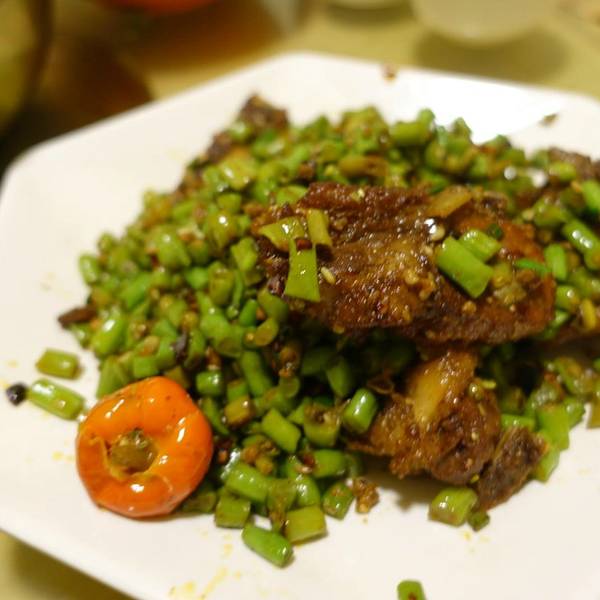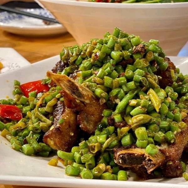 排骨应该是事先腌制好再炒的,加入泡豇豆和生豇豆一起翻炒,肉香、骨香、蔬菜的清香、泡菜的酸香融合在一起,光是闻闻就口水直流🤤。排骨大块也很是入味,外酥里嫩。同时豇豆粒也非常的下饭。