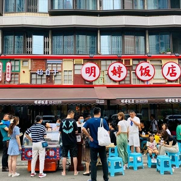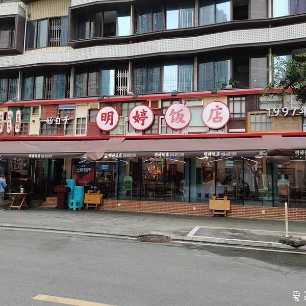 曾经明婷饭店在成都号称第一的苍蝇馆子,然而新店已经没有老苍蝇馆子得感觉了,没办法拍到很古老的feel好难过。然后发现光顾的都是专门打车去得游客。很可惜这次去明婷胃口不好,点的都是很清淡的东西,有全家福...曾经明婷饭店在成都号称第一的苍蝇馆子,然而新店已经没有老苍蝇馆子得感觉了,没办法拍到很古老的feel好难过。然后发现光顾的都是专门打车去得游客。很可惜这次去明婷胃口不好,点的都是很清淡的东西,有全家福,感觉这是最不该点的,而且超级大份实在吃不完,就是鹌鹑蛋啊 鱿鱼啊 火腿啊 莴笋啊一顿乱炒……点这道菜就有点可惜了。素翅莲白,好吧原来是粉丝炒包菜,粉丝QQ的,加上包菜、辣椒翻炒,别说还挺香。回锅肉是我这餐最满意得了!!白肉+青椒虽说有点油,但终于感受到再吃川菜了实在感动。这里比较推荐这道回锅肉。最难过的是隔壁桌刚好点的都是这些菜,我真是吃着自己桌上的,看着别人的。唉。之前做了攻略,说到明婷饭店要点脑花豆腐(也就是猪脑+豆腐+豆瓣酱)、荷叶酱肉、还有看到隔壁桌点的水煮肉片,实在是馋。然后再看看自己吃的是什么……总之当明婷饭店从菜市场搬迁后,“苍蝇馆子”就没有“苍蝇馆子”的味道了,倒更像游客店了。因人而异吧。菜单上花样挺多的,有不辣的也有辣的,辣的就是那些大家常点的被炒得很火的那几道,不辣的就像我点的这样。所以作为游客,如果带小孩或者不敢吃辣的去也是不错的选择。至少她家的味道不错,也不会太油。