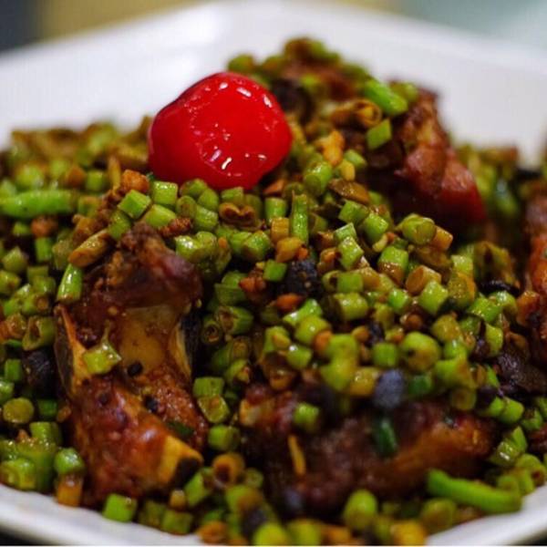 奇香排骨:四季豆炒得入味,霸王骨啃起来有滋有味,是一道绝佳下饭菜。