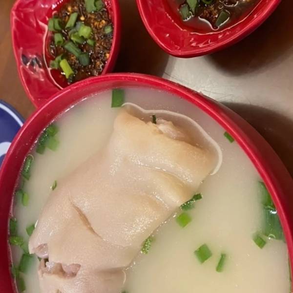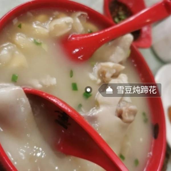 非常不错的小吃,很多四川人把这个当做宵夜来吃,一份现在是18元的价格已经涨了很多了。汤炖成奶白色,里面有不少芸豆。可以要一小碟豆瓣酱来沾,配合米饭吃。猪蹄炖的很烂,几乎脱骨拿筷子轻轻一戳就掉下来了,...
