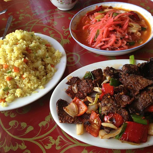 在拉萨最繁华的北京路上。店里光线有些昏暗。酥油茶青稞酒都是一大壶上的,不过味道都很纯正,尤其酥油茶,相当醇厚。炒饭有丰富的选择,分量也实在。传统的藏椅很舒服,可以整个人躺下去,太惬意。