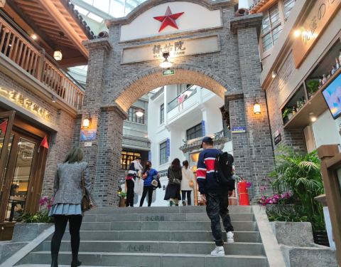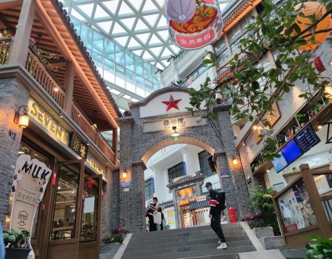 红旗街万达对面,里面的建筑很好!小吃很多