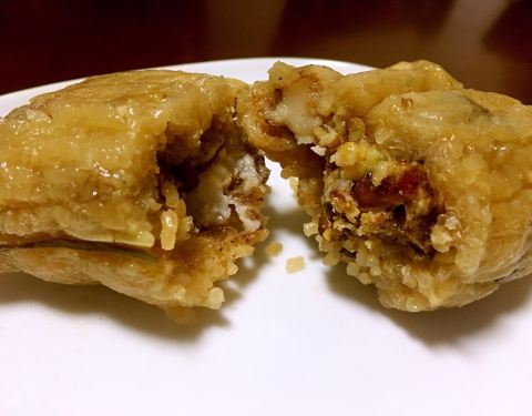 门店很小,不仔细留意的话看不出来。只是人好多,所以基本上不用找,看到排队的就是了。相比外面的粽子来说价位稍稍有些贵,可是味道和份量都很地道。这年都实在很难有板栗粽子了。