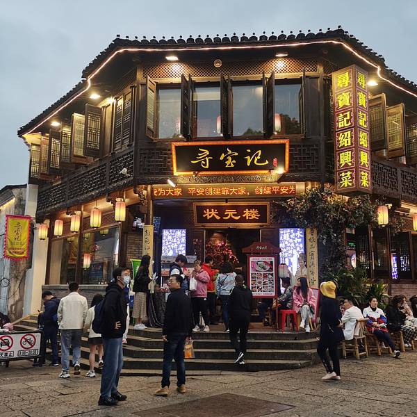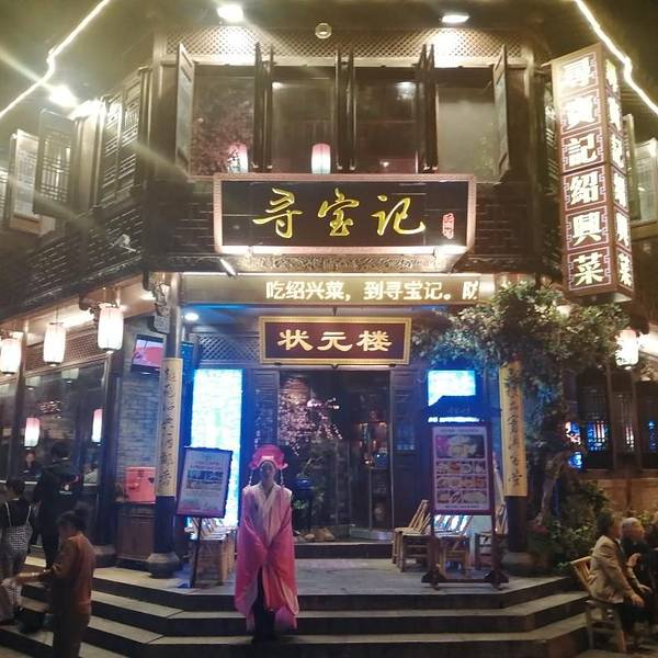 之所以来这里是为了晚饭,晚饭要在这条街中心的寻宝记状元楼解决。这家应该算是整个绍兴生意数一数二好的饭店了,我们6点排上队,大概快9点才吃上。菜的味道都挺不错,就是味道偏咸了点,导致我们吃完之后狂喝水...之所以来这里是为了晚饭,晚饭要在这条街中心的寻宝记状元楼解决。这家应该算是整个绍兴生意数一数二好的饭店了,我们6点排上队,大概快9点才吃上。菜的味道都挺不错,就是味道偏咸了点,导致我们吃完之后狂喝水。因为吃的比较晚,醉鸡,梅菜扣肉都已经没有了,只好随便点了一些,再加上瓶黄酒。