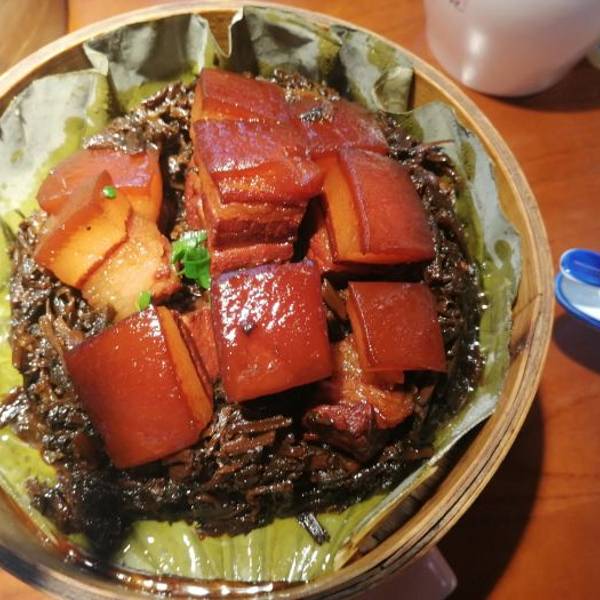 首先,环境古香古色的,从窗看外面的古街,浮躁的心瞬间沉淀了下来。点了经典菜梅菜扣肉,绍三鲜,醉蟹。相比之前吃过的梅菜扣肉,这家的梅菜稍微甜一点,肉更软一点,一口下去完全不会像实物看起来那么油的,赞...