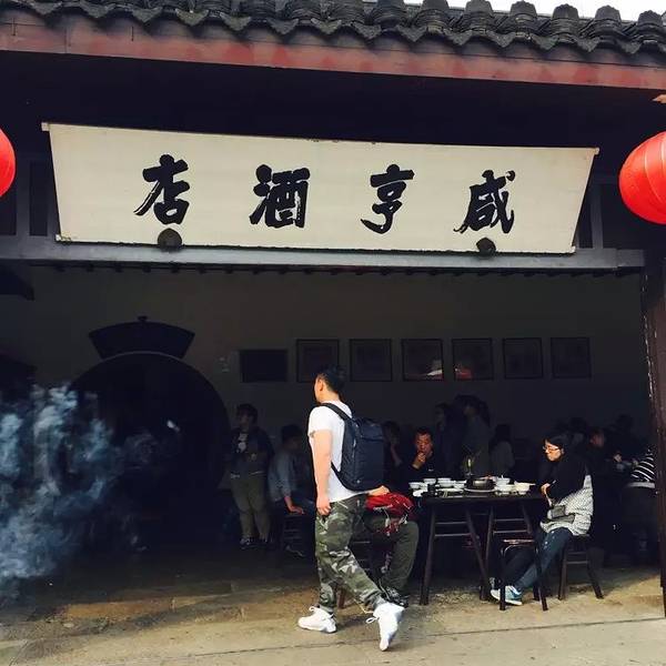 说到邵兴除了三味书屋和百草园,大家最熟悉的应该就是孔乙己的最爱——咸亨酒店了!我是下午到的邵兴,休息了片刻就按照百度地图去找咸亨酒店,结果找到了一个大饭店,当时极其失望!后来问了后才知道真正的咸亨...说到邵兴除了三味书屋和百草园,大家最熟悉的应该就是孔乙己的最爱——咸亨酒店了!我是下午到的邵兴,休息了片刻就按照百度地图去找咸亨酒店,结果找到了一个大饭店,当时极其失望!后来问了后才知道真正的咸亨酒店在鲁迅故里的那条老街上,我们又徒步走了过去,看到门口的孔乙己我就知道我们来对了!来邵兴,几个东西是不能不吃的,都是孔乙己的最爱,咸亨酒店的黄酒、炸臭豆腐和茴香豆。我们看不够吃又多点了点别的(结果太咸,根本没法吃)。而且茴香豆也不是那么好吃,不过黄酒和炸臭豆腐是一流的赞!臭豆腐外焦里嫩,配上两个调料,更好吃;黄酒喝着比市面上卖的好喝多了,很多住在这里的人都拿个壶来打酒,我买酒的时候就看到以瘦瘦的老大爷打酒,让我瞬间想到了孔乙己,哈哈,不过酒喝着好喝,饭后劲足,我大概白酒八两到一斤的量,喝了一碗黄酒后,当时没事,回到酒店就不行了,倒头就睡。终结就是这咸亨酒店就点这几个知名的就好了,其他的少点点,而且价钱不贵,来邵兴一定要赖试试!