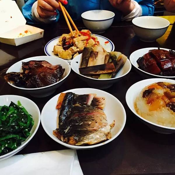 位于鲁迅故里旁边,你可以在逛完了鲁迅故里然后来这里品一下地道的绍兴菜。店门口有一个鲁迅先生笔下的孔乙己拿着茴香豆站在门口,好像就是来指引你来这里尝尝茴香豆,喝喝老酒。这是一家很质朴,很简单的店,没有华丽的装修,只有以前老百姓家中的那种方桌子,长凳子,不过这样倒是更符合在这里吃饭的感觉。这里没有那种想要的小炒,一般都是大盆的,我们点了半斤那种坛装的黄酒,坛装的酒可比瓶装的地道多了,然后点了盘茴香豆,这样品黄酒那种感觉太奇妙了,就感觉来到了鲁迅笔下的书中,臭豆腐也是必须要点的。还有素包子,绍三鲜,干菜扣肉,霉根蒸豆腐,油焖笋,都是绍兴的特色菜,都很好吃。在这里吃饭,很有老绍兴的感觉。吃好饭你还可以去走走青石板路,就在旁边。