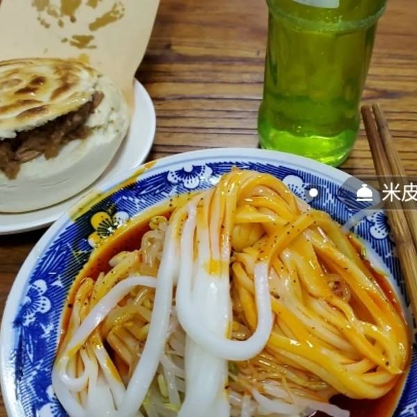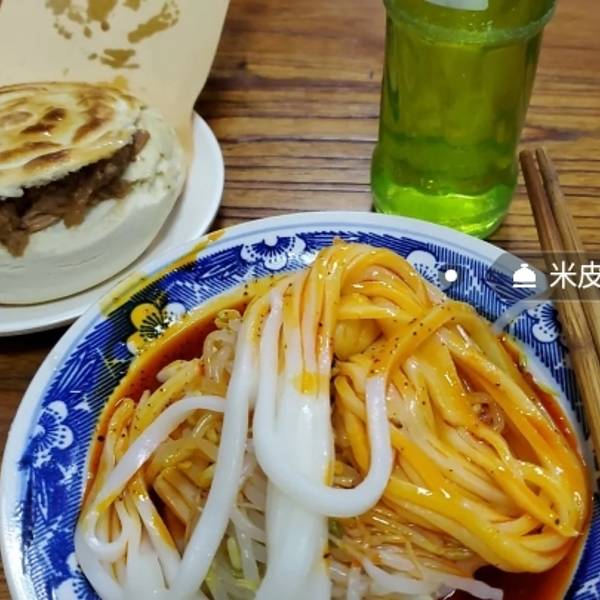 米皮是油辣子和单纯的醋汁得调味吧!带走是把一个调味汁单独大包,基本认定是醋汁.......米皮口感顺滑,不是那种容易断软糯糯的,所以特别给好评!