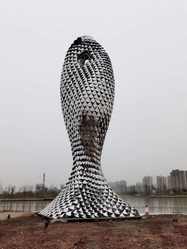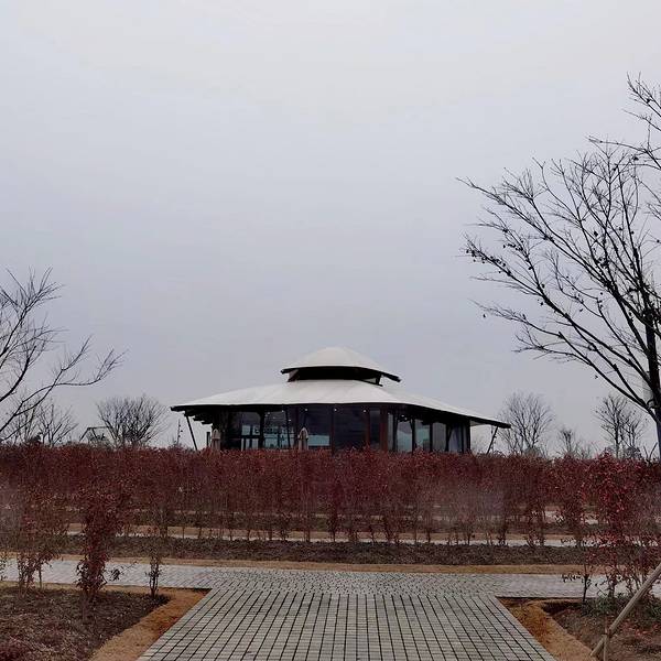 第二站:金海湖。 金海湖,又名“上海之鱼”,位于上海市奉贤区,距上海市中心约44公里。 金海湖是上海八大人工湖之一,由国际规划设计大师、迪拜“棕榈岛”主创设计师拉瑞·奚伯斯设计,从高空俯瞰,金海湖呈现出一条金鱼的造型,围绕着这条金鱼,可以打卡的地方还不少呢! 打卡点一:各类公园。沿湖的不同区域内,分别有不同主题的公园可以打卡,比如:有着草坪音乐剧场、思贤小筑、慢行步道、休闲沙滩等景观的年丰公园;有着茶花迷宫帐篷屋、蚂蚁乐园泡泡屋、秋千索道滑滑梯等娃娃们喜欢的、家长们溜娃好去处的泡泡公园;有着休闲健身、艺术集市、摄影基地、音乐节艺术节、户外剧场,空气中都弥漫着令人愉悦的艺术气息、纯天然无公害的文艺青年胜地青年艺术公园;有着扎堆的造(奇)型(形)、各(怪)异(状)、内(难)涵(以)、深(捉)刻(摸)的雕塑,给看官们带来丰盛的精神大餐的雕塑艺术公园…… 这些公园都是开放式的,不要门票的,所有的园内都不能骑行,这点感到有点遗憾。冬季很萧条,打卡这些公园,看点不是很多,春秋时节,百花盛开、五彩缤纷的时候去打卡,最佳! 打卡点二:各类展馆。金海湖边和近旁,有炙手可热的网红打卡点,如:奉贤博物馆、奉贤规划资源展示馆等;有大型综合高星级酒店,有一种矫若游龙感觉的东方美谷论坛酒店;有“隐身”于1200亩林地内的森林中的艺术殿堂,全国首座森林剧场—九棵树未来艺术中心…… 这些展馆都可以拍出大片的哦!一年四季都适合打卡的。