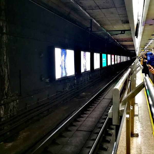 ...牌就和其他站的感觉不一样,非常的时尚,背景墙也很漂亮,而且上下行都有电梯,让乘客免受爬楼梯之苦