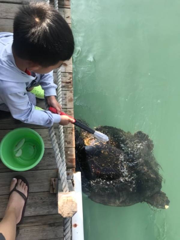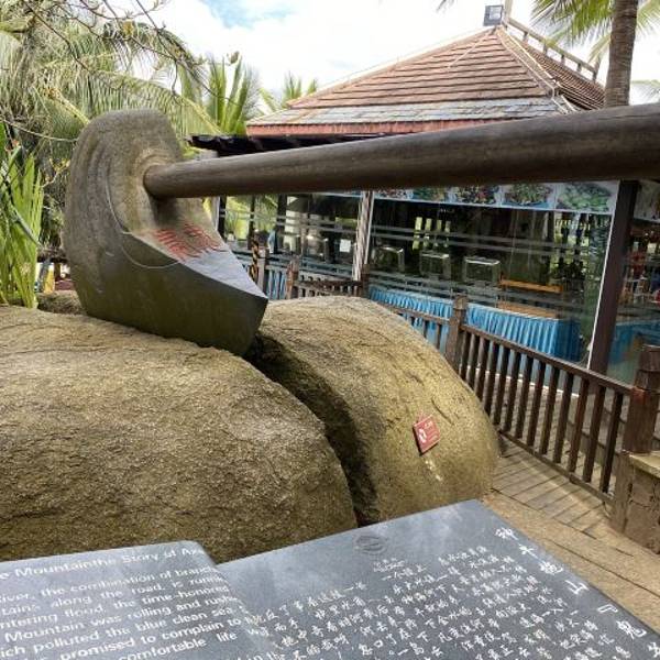 在岛上的一片海滩上,游客可看到一只小海龟破壳挣扎而出的情景,这里表达了对生命的关爱,对生活的热爱。活着就是福!而龟雕像的背后是一个“福”字,这个岛上刻有“福”、“禄”、“寿”三个字,因而这里又有着“福海寿山”之称。