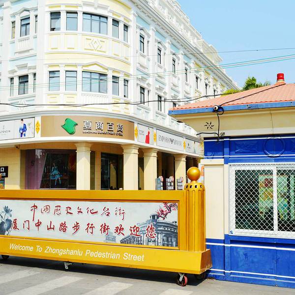 中山路步行街对于厦门来说,就像是南京路之于上海,春熙路之于成都一样。它是一个始建于1925年的旧城街区,也是厦门较老的商业步行街,在现代化与历史不断交融的过程中,仍保留着比较完整的近代历史风貌。 在这条宽宽长长的街道上,藏匿着数不清的小吃、风格迥异的商铺和弯弯绕绕的小巷。在这里你完全不必担心会迷失在小巷子中,因为主干道的路是所有道路里较宽的,即使走错了,也能找到回来的路,所以你可以尽情去逛吃逛喝,寻觅喜欢的小店。 不容错过: #精美的骑楼建筑# 中山路步行街上独特的连排骑楼建筑,不仅吸引着四海八方的游客,也是老厦门人心中的一份归属和念想。 它以粉红和乳白作为主色调,有着浓郁的南洋风情。骑楼建筑上起伏的轮廓线、形态各异的山花、极富韵律的连排窗、精致的花饰细部以及典雅的色彩,无一不彰显着这里的古朴与韵味。 #历史悠久的文物古迹# 中山路步行街上除了琳琅满目的特色商铺,还保存着众多的文物古迹,如福建水师提督任——陈化成的故居、闽南民居红砖厝、罗马式建筑风格的中华圣堂等。这些虽是年代已久的文物古迹,斑驳之中却更显闽南深厚的文化底蕴。 #巷子里的市集# 中山路步行街是一个商铺云集的地方,主干道上是一些大型综合商场,如夏商百货、巴黎春天、中华城等。主干道分裂的小街小巷中隐蔽许多特色商铺,这些商铺店面虽小,店里商品琳琅满目,种类十分丰富,值得一逛。 #吃货的美味宝典# 中山路步行街上有许多令人垂涎欲滴的美食,如“黄则和”的花生汤、八婆婆烧仙草等,都是非常受欢迎的小吃,可以尝试一下。此外,位于海滨大厦24层的必胜客也值得一去,这里临窗的位置能俯瞰整个鹭江道和鼓浪屿,在晚上,还能观赏灯火通明、车流不息的厦门夜景。