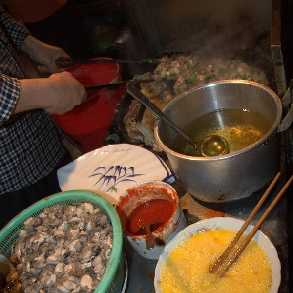 海蛎煎20元,本人特别讨厌吃葱,放了一大把的葱,做时我还特别强调了少放葱,于是狠心的小哥又加了一把葱...还好做出来葱的味道不是很大,有一点想炒焖子,果冻的口感,加一些泰式甜辣酱和辣椒油,味道还可以。