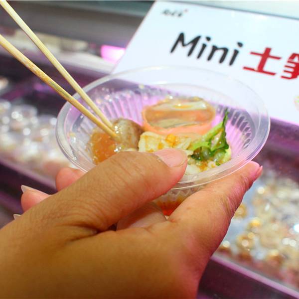 虾饼也是网红小吃,20元,虾做成酱,蘸上玉米面煎成饼,泰式甜辣酱做蘸酱,真心不好吃,个人觉得用添加料维持食物的味道都不是美食。