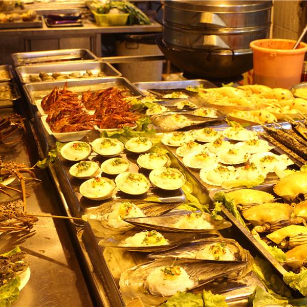 中山路边上的人和路有专门的一条台湾小吃街,是原汁原味的台湾味道,有兴趣的可以去尝尝。经营着地道的闽南和台湾美食,作为吃货是不得不去的。从美食街入口第一家邱记美食起,200多米的街道,鸡脚冻、泡菜蛋虾、蚵仔煎、大饼包小饼、大肠蚵仔面线、台南担仔面、烧仙草、筒仔米糕等让人应接不暇,几乎都是设在摊位上临街而卖,这里海鲜也比较便宜,但是感觉卫生程度还不够。
