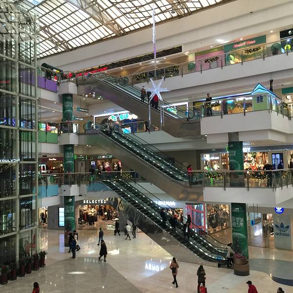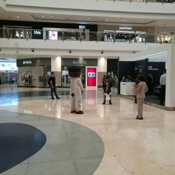 商场有很多大品牌,还开有对外门店,ZARA、阿迪达斯、GAP、H&M等等,其中GAP3件五折,折扣还是很明显的。商场内部空间大气,还有宝马五系的展示台,喜欢汽车的朋友可以去看看。整个商场集购物、休闲、餐饮、娱乐为一体,不过感觉人气不是那么旺,人好像不是很多的样子。看到了UGG的品牌,很多人海外代购的靴子。宝马车哪里还有个人扮玩偶在互动,不过人不是很多。购物环境算得上一流的商场,不知道礼拜天上午为什么人气不是那么的旺盛,估计是价格的略高的缘故吧,不过看了几个国际通用的品牌,还是有些折扣的,感觉产能过剩的毛病还是没有完全解决掉,物质是极大丰富了,内需还是没有完全调动起来啊。不过对于我这样的一个爱逛街的,很喜欢这里的环境,不会有拥挤的感觉,可以很轻松的休闲,购物。