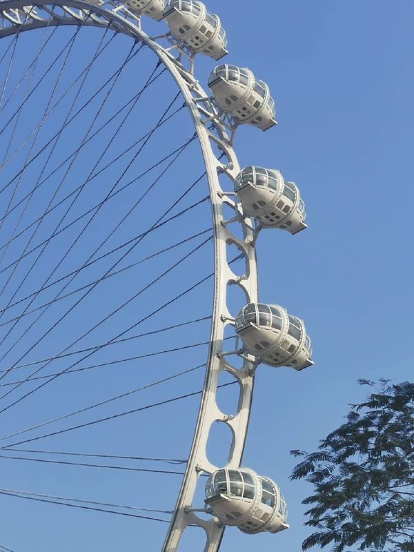 摩天轮已经安装完成,等待开业,周围环境相当好,海景漂亮,周围大楼的夜景也很美,晚上在海边散步看音乐喷泉和灯光秀的人比较多,
