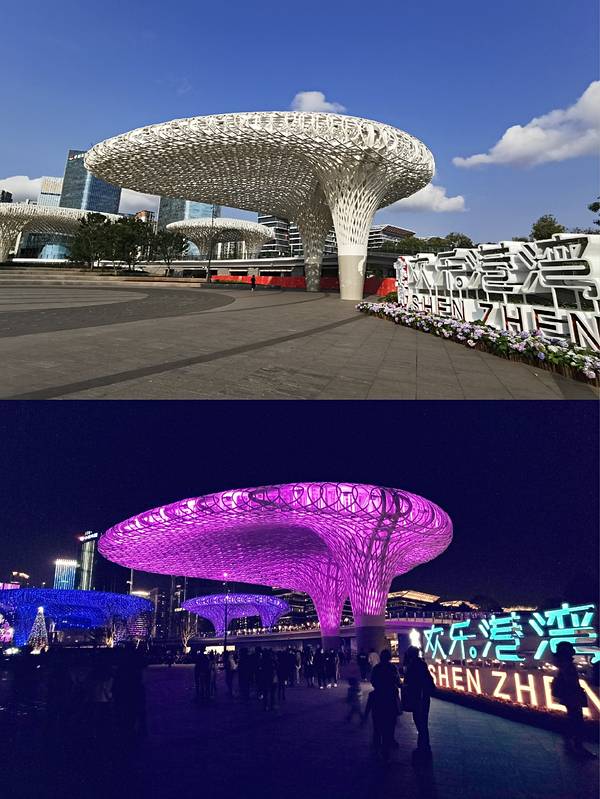 散步到欢乐港湾,得以近距离观赏湾区之光摩天轮,再往前就过不去了。这里是前海湾,也是珠江入海口,摩天轮的轿厢可以承载二十多人,站在轿厢上观赏海景和沿江高速桥,最远可以眺望中山。这里将是深圳未来的旅游...
