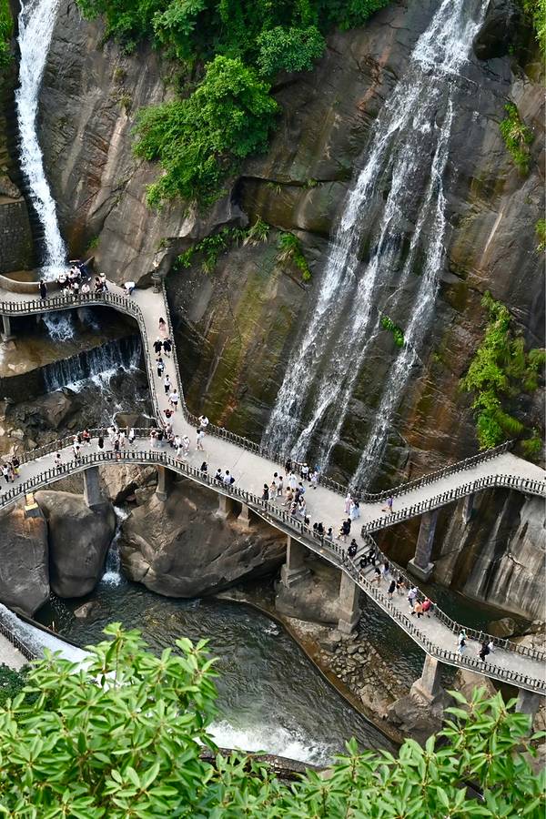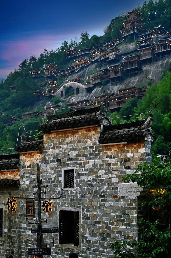 ▲悬崖民宿群+百尺飞瀑!汉服拍照圣地,傍晚悬崖栈道亮灯时,仿佛《苍兰诀》场景还原