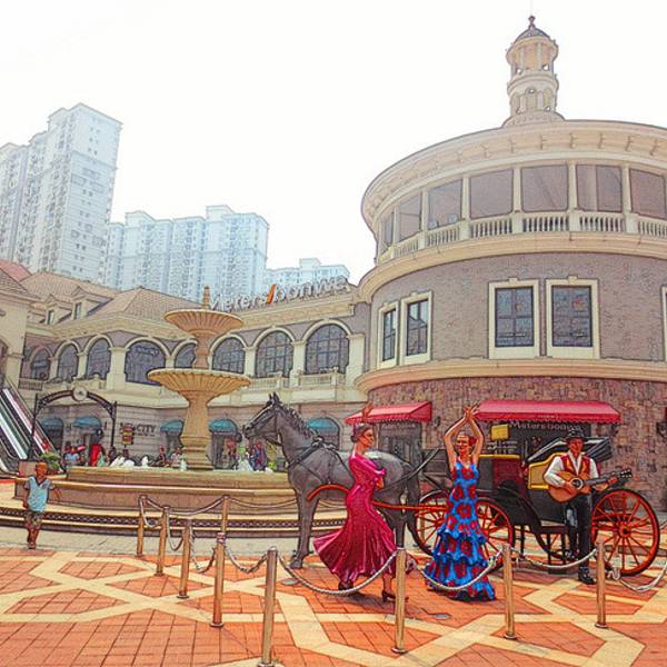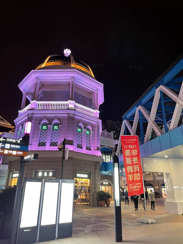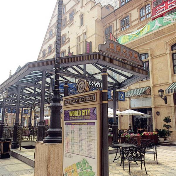 它除了标志性的世界城建筑以外,还拥有几大外国风情街,包括西班牙街,意大利街,德国街以及法国街。不过三月份我去的时候法国步行街正在建设,还未竣工。