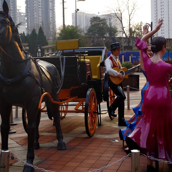 来到这里,步行街上人非常多,可能这里会让不同年龄层次的人都能感觉到鲜活吧。这是一个拍照的好地方,一路上欧式风格的建筑和街道,身着华丽服饰的胡桃夹子,骑着骏马的唐吉柯德,弗拉明戈广场上的喷水池……这些充满异域风情的雕塑、建筑无不充斥着光谷步行街对欧洲文化的表达;在这里拍照可以拍出假装在欧洲的感觉,太多的POSE在脑海中尽情展现。