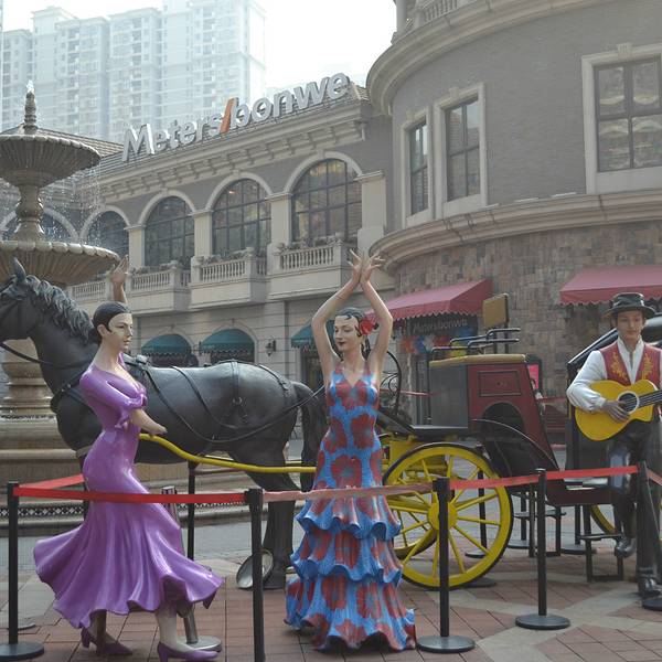 各条风情街为西班牙风情街由具有西班牙特色的建筑组成,中间还串联了弗拉门戈、西班牙、斗牛士三大广场。