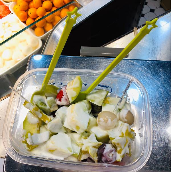 最后,当我们吃完这些辣而美味的烤串,必定来一盒酸奶水果沙拉🥗清理肚子里的油腻。