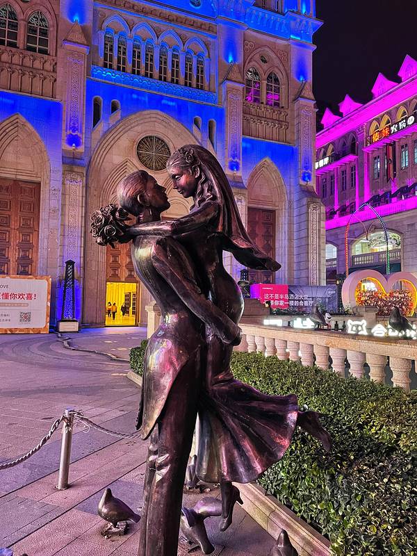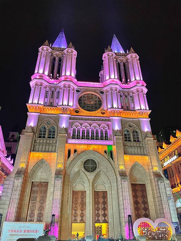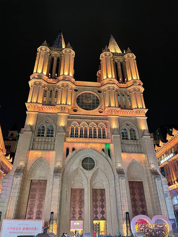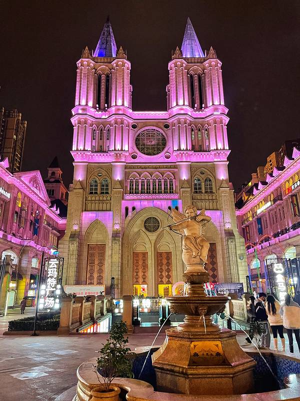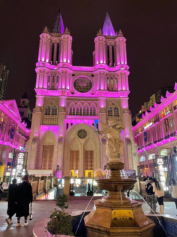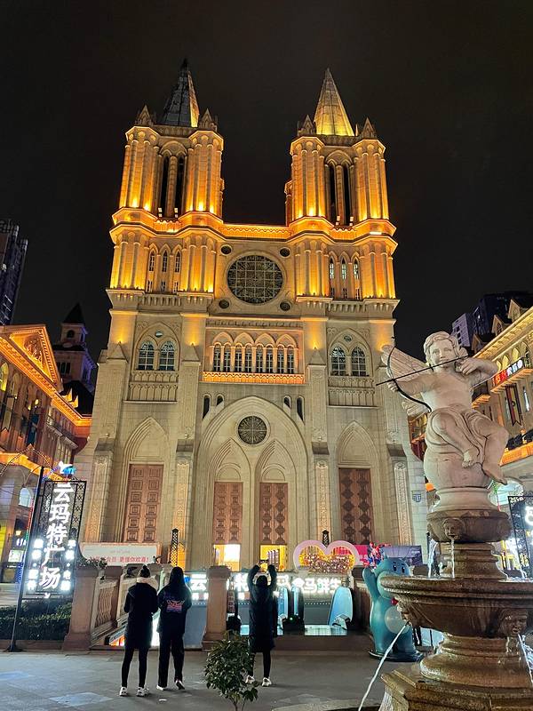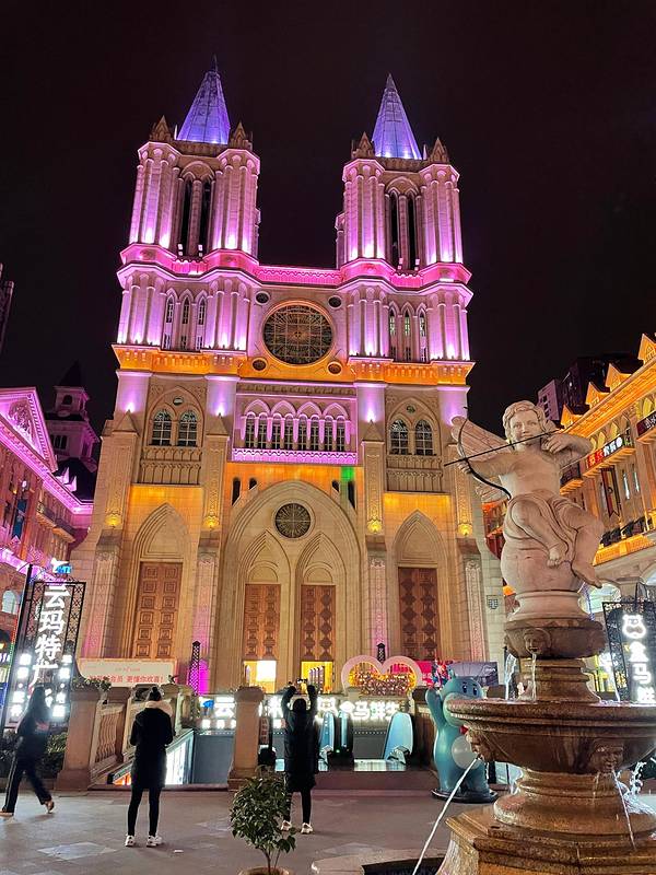 走累了可以在光谷多莫大教堂里面休息一下,这里充斥着关于爱情相关的装饰,也可以拍出美美的照片。晚上灯光亮起以后,大教堂还会变换出交错的灯光,再加上门口的喷泉和小天使,让人有种置身巴黎的感觉。