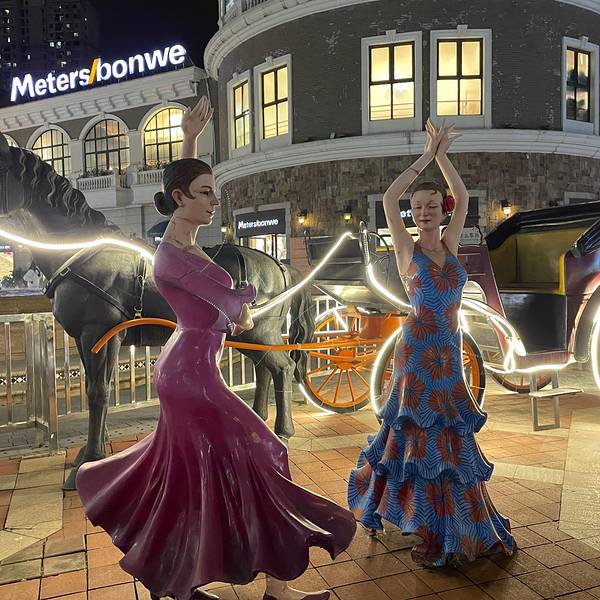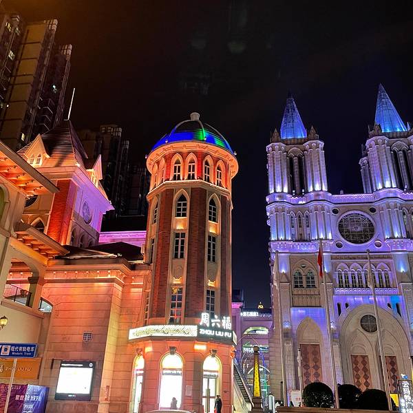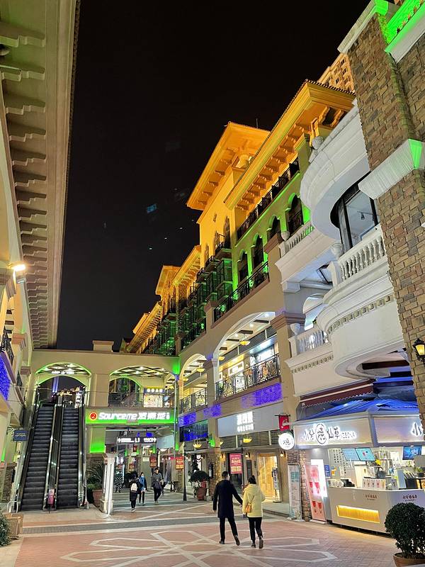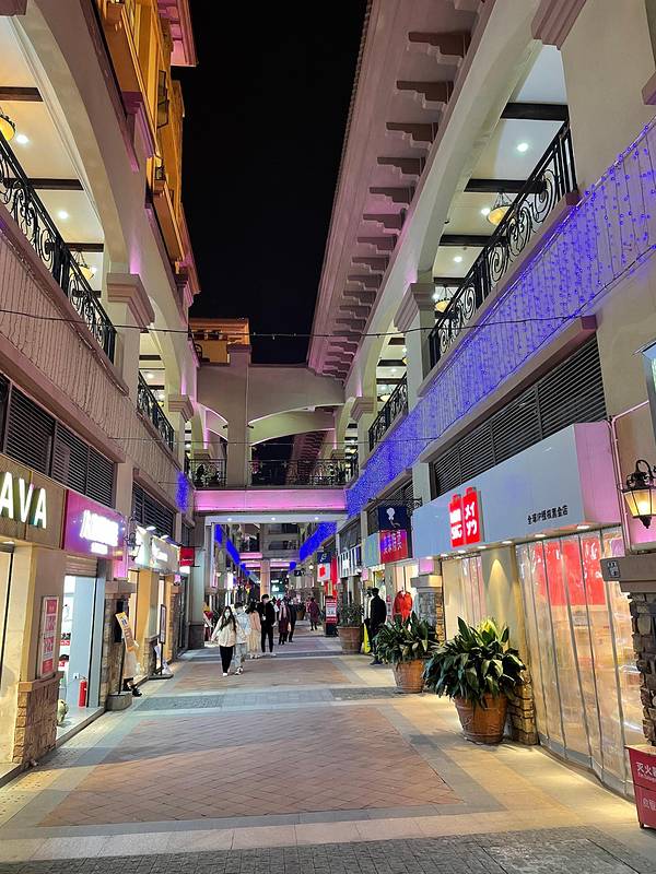 这里最大的看点是建筑,异域风情浓厚,尤其是晚上灯光照耀就更美了,绚丽多彩。基础设施也比较好,走累了就有休息的椅子,这个也做得很细心,各区都有各区的特色。在这里拍照是不错的主意,发到朋友圈就是出国旅游啦,哈哈。