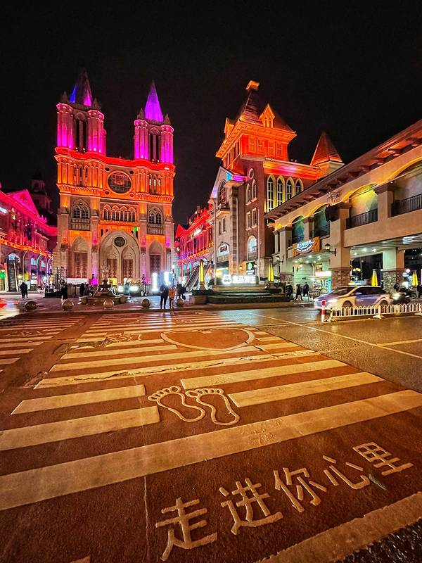 教堂两侧是酒吧和清吧教堂内部很适合街拍。。。有不少人坐在椅子上看教堂的宣传片德国风情街的士兵雕塑晚上的意大利风情街广场 展开