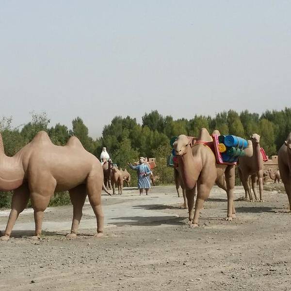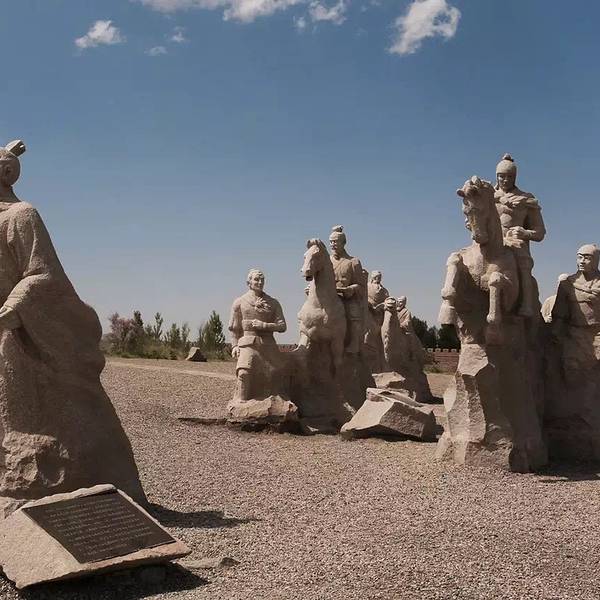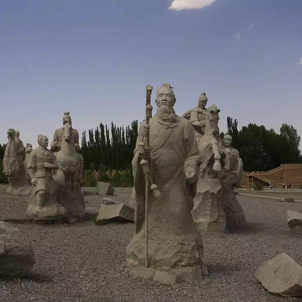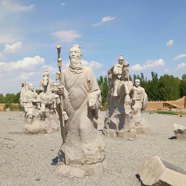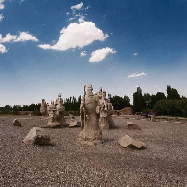 景区里面有一处“丝绸古道”雕塑群,雕刻了中国古代在嘉峪关地区有过记载的张骞、霍去病、班超、玄奘、马可波罗、林则徐、左宗棠七位主要历史人物造像及五名随从、二匹马、二峰骆驼和一架马车塑像组成,借以展示石关峡悠久的历史和厚重的人文内涵。
