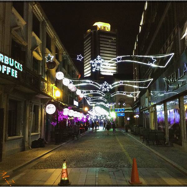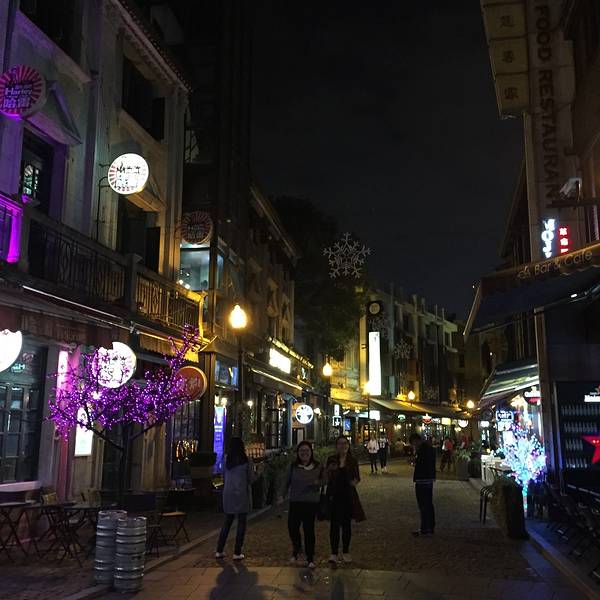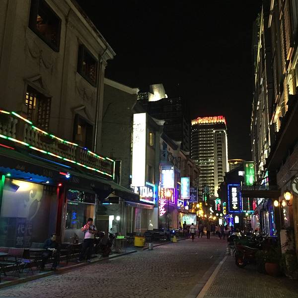 老外滩酒吧一条街,相信再晚些时候这里肯定很热闹吃完晚饭出门打车准备前往老外滩,六七点打车实在是太难了,打了半个多小时都没有打到车,最后走到大马路上打到一辆taxi和别人拼车。这应该算是宁波之行中最不顺利的一笔吧。